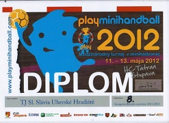 Ve dnech 11.-13.5.2012 se naši minižáci ročníku 2001 a mladší zůčastnili turnaje PLAYMINIHANDBALL 2012 ve slovenské Stupavě. Naši hráči vybojovali konečné 8.místo z celkového počtu 28 týmů a 3 zemí !! Všichni předvedli bojovné výkony a zaslouží si pogratulovat.